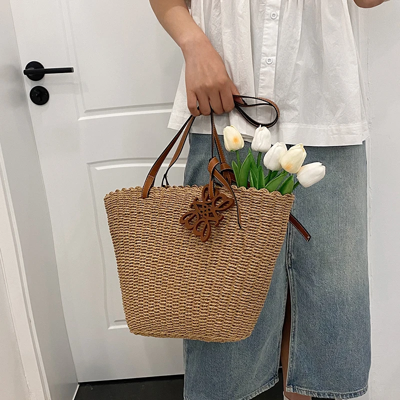 Introducing our stylish Woven Straw Beach Tote Bag - the ultimate summer essential! With its spacious design, durable construction, and Woven Design, it's perfect for carrying all your beach essentials. Whether you're lounging by the ocean or strolling along the boardwalk, this tote bag is a must-have accessory for a day in the sun.